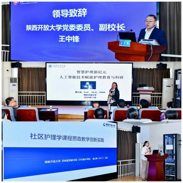 研讨会通报了国家开放大学首届“药健康 竞未来” 药学科普大赛和“筑梦成长 守护健康”护理征文活动的获奖结果,分享了优秀案例与经验做法。护理与健康学院负责人作医科类专业教学总结汇报,西安交通大学护理学院院教授李小妹、国家开放大学农林医药学院护理学专业负责人副教授唐已婷分别作专题讲座。