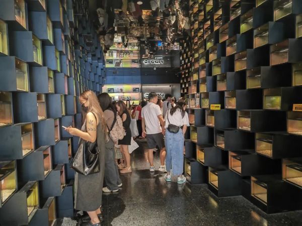 不过,为了达到这种如梦似幻的视觉效果,也带来了一些问题。例如,很多爬柜的高度超出了一般人的舒适视线范围,太高或太低的柜子都不便观看。不过为了吸引顾客,这种吸引人的视觉设计,牺牲了某一些实用性也是很值得的,毕竟“发生生意可能”的前提,还是需要让客户进到你的店里。