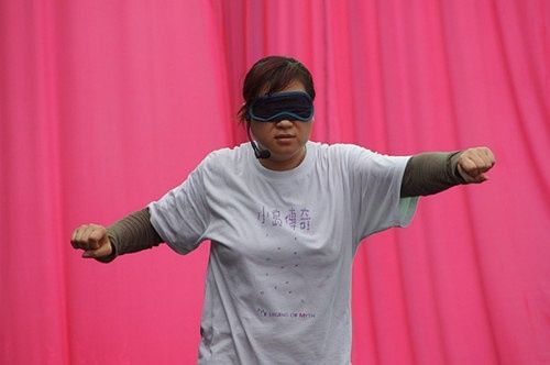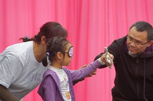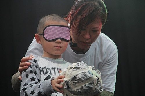 勇气训练中的互动环节让现场气氛活跃了不少,小朋友们先后勇敢走上舞台,像小乌龟一样蒙住双眼,在麻鹰妈妈的指示下通过石头、树枝等障碍物,终于奔向麻鹰爸爸的怀抱,迎来观众掌声阵阵。“越怕就越要面对”,麻鹰爸爸对小乌龟说的话也走进了现场小朋友的心里,看不见也能够有勇气,因为有支持,因为有信任。
