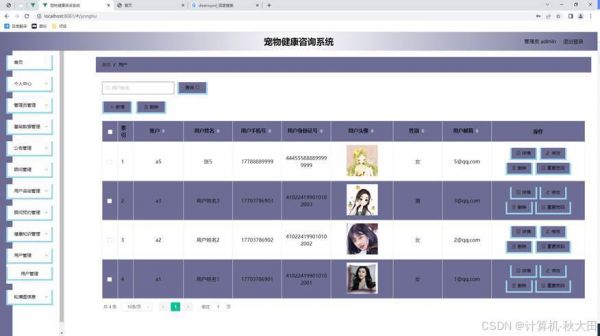 宠物健康咨询系统管理员可以管理用户的基本信息,可以管理公告信息,可以管理公告信息等。