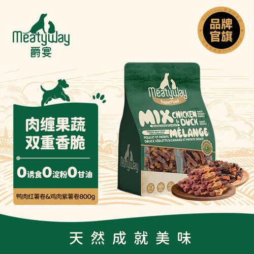 在健康营养方面,Meatyway坚信,优质的食材是宠物健康的基础。这款肉干选用了天然的鸭肉、鸡肉、红薯与紫薯,确保每一口都是对爱犬身体的呵护。无论是日常零食还是训练奖励,Meatyway都为您的爱犬提供了最天然的饮食选择,帮助增强体质,保持活力。