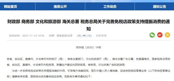 近日,财政部、商务部、文化和旅游部、海关总署、税务总局联合印发《关于完善免税店政策支持提振消费的通知》,从多个方面完善了免税店政策,鼓励免税店引入更多能够体现中华优秀传统文化的特色优质产品,增加国产品在免税店的销售;进一步扩大免税店经营品类,将更多便于携带的消费品纳入经营范围,新增保健食品、宠物食品等热门类别产品。
