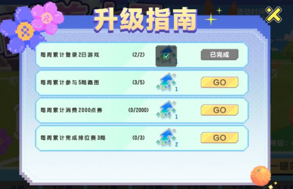在活动开启后,完成升级指南弹窗里面的任务,即可获取对应的等级。达到一定的等级后即可前往活动主界面领取对应的奖励,每升5级都可以获得一个极品奖励,当达到15级后必得联动宠物【pipi美小马】。