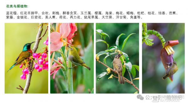 b.蜜源与昆虫寄主植物:吸引昆虫,间接为食虫鸟类提供食物。