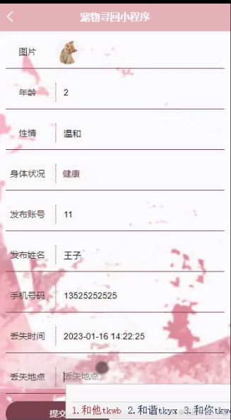 近年来,随着宠物在家庭中的普及程度不断提高,宠物已成为许多家庭的重要成员。然而,由于各种意外情况,如宠物走失、被盗等,宠物主人常常面临寻找宠物的困境。传统的寻找方式,如张贴寻宠启事、发动亲友帮忙寻找等,虽然在一定程度上能够提供帮助,但效率较低,且难以覆盖广泛的区域。因此,开发一款宠物寻回小程序,利用移动互联网和社交媒体的力量,实现宠物信息的快速发布、传播和匹配,已成为当前宠物主人迫切的需求。