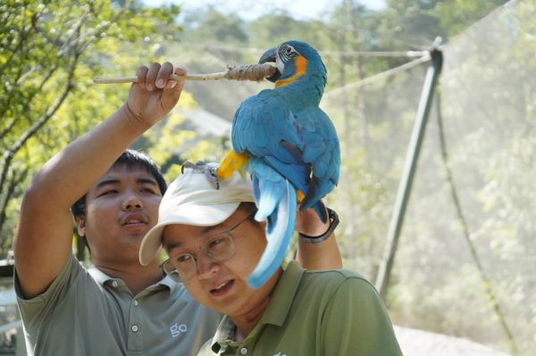 该园区内,来自玻利维亚的蓝喉金刚鹦鹉尤为珍贵。据了解,该物种在全球野生总数仅约400只,而千鹦鸟舍就自主保育了11只。