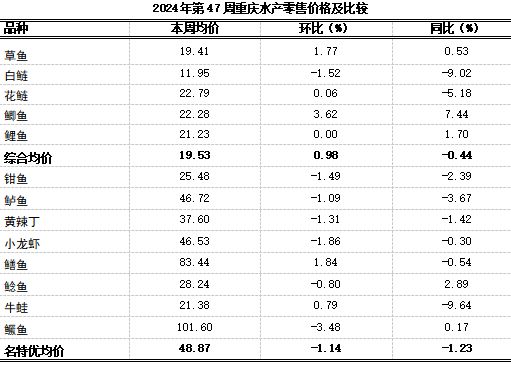 2024年第47周重庆渔业市场周报(总第91期)