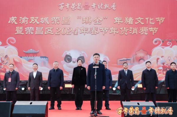 1月18日,成渝双城荣昌“琪金”年猪文化节暨荣昌区2024年春节年货消费节开幕式在重庆荣昌区人民广场举行。此次活动以“千年荣昌·年猪飘香”为主题,开幕式现场,上演了年猪大拍卖、“荣昌猪”厨艺大赛、“猪猪”游园会、年货消费节、“渝味360碗”品鉴以及文艺汇演等丰富多样的节目。