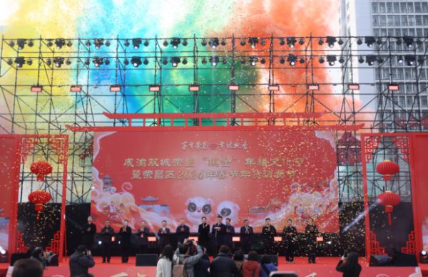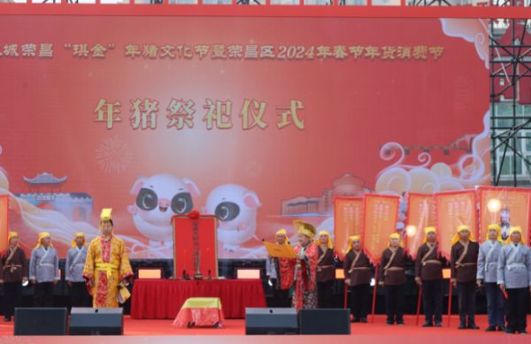成渝双城荣昌“琪金”年猪文化节暨荣昌区2024年春节年货消费节在荣昌区人民广场开幕。(王位 摄)