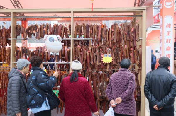 市民在选购荣昌猪猪肉加工品。(王位 摄)