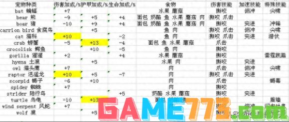 甲.关于加成的解释.所有宠物公用一个基础属性,在此基础上的每种种类的各自加成比例