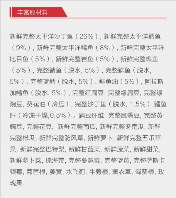 原料表就是配方表,每款产品的包装都是有配方表的,买粮之前一定要看配方表,但千万不要被配方前几位的“肉”给蒙蔽双眼。