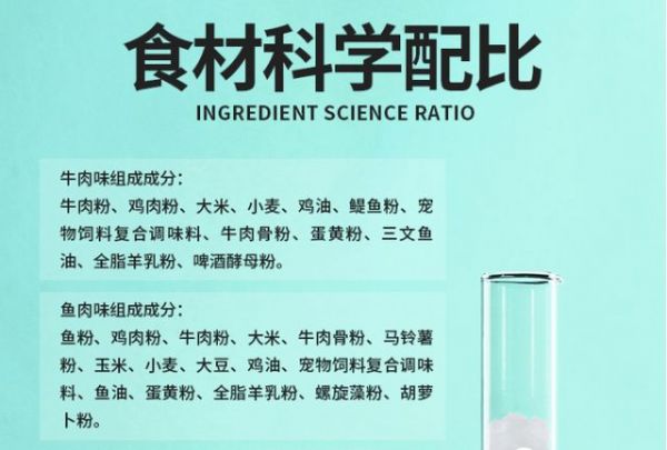 是不是很相同都是出现了一个叫“宠物饲料复合调味料”的原料,这个东西可以理解为口味增强剂,说得通俗点就是“诱食剂”,最早应用于猪饲料的生产里面。
