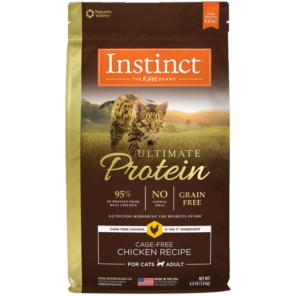 最后,推荐给大家的是Instinct天然百利猫粮。这款猫粮以高蛋白鸡肉为主料,含有95%的高动物蛋白,确保猫咪的饮食需求得到满足。它的配方完全不含谷物,所有成分均为100%天然,满足全球6大权威认证标准。