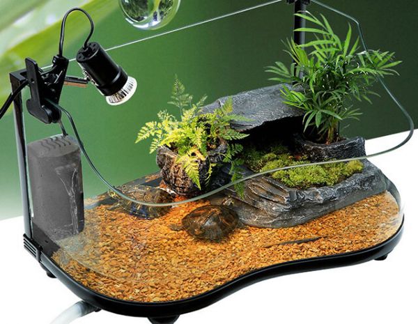 乌龟缸怎么布置呢?灯光不用太亮,一般来说,用一个12W的LED灯就足够了,如果还需要更多光源的话可以自行布置。