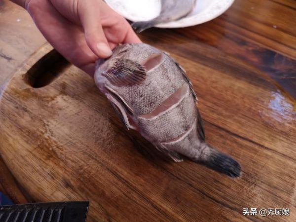把鱼清洗干净,去除鱼鳃,鱼内脏,鱼鳞,鱼鳍,然后在鱼身上划两刀,方便鱼入味。