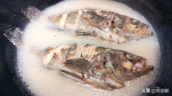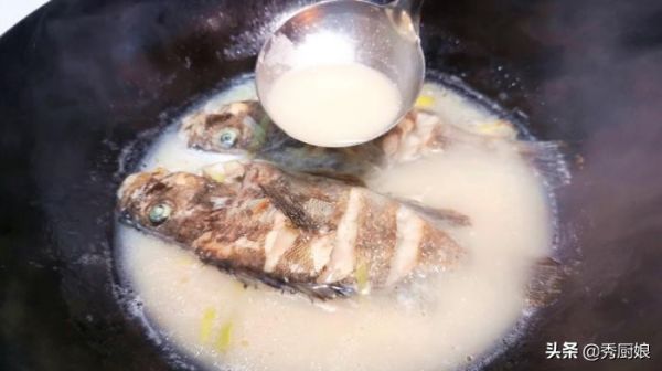 加入足量的热水,加入适量料酒,大火煮开,然后小火炖。这里有两点需要注意:1.一定要加热水,这样汤不腥,并且炖出来的鱼汤是奶白色。2.一定要一次性加够足量水,在炖制过程中不可以再次添加,后期再添加水,汤的浓度就降低了,影响汤的鲜美口感和营养价值。