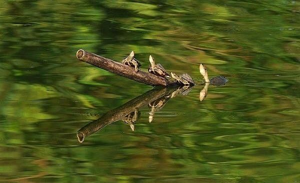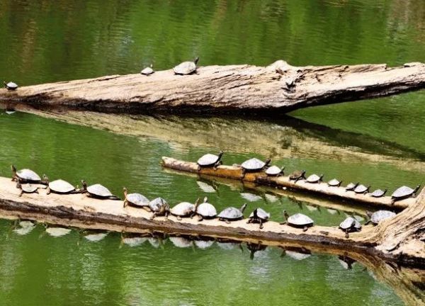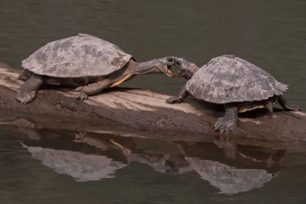 阿萨姆棱背非常喜欢晒背,在旱季和较冷的月份,他们几乎全天都趴在木头上,河岸上晒太阳。