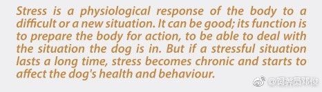 压力是身体对困难或新情况的生理反应。 它可以是好的; 它的功能是为身体做好准备,以便能够处理狗所处的情况。但如果压力持续很长时间,压力会变成慢性并开始影响狗的健康和行为。