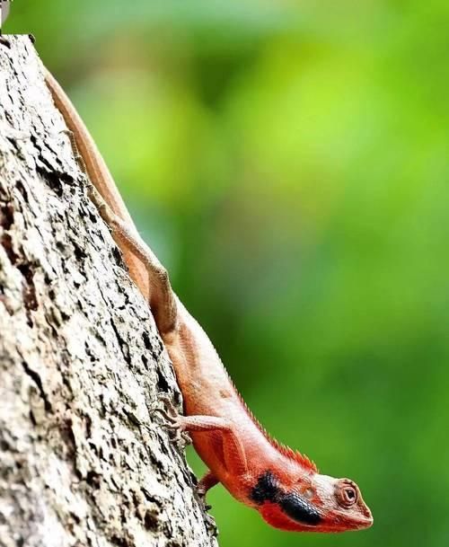 变色树蜥是一种绿色或棕色的小型爬行动物,善于通过调节体温和变化身体颜色来适应环境。它们以昆虫、水果和其他植物材料为主要食物。