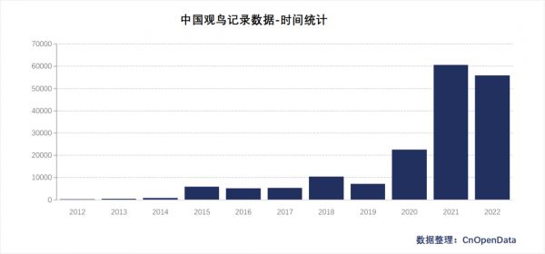 CnOpenData中国观鸟记录数据覆盖了自1997年以来的中国观鸟记录信息,囊括34个省、直辖市、自治区,生动立体地展示了我国二十一世纪以来的观鸟发展历程,为我国生物多样性、环境相关研究提供丰富、详细的数据支持。