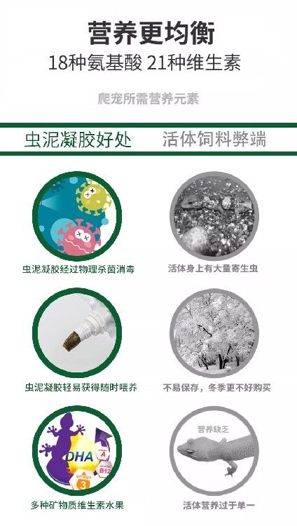 爬宠果泥虫泥凝胶中添加的微量元素可催化酶反应,促进激素合成,同时可形成功能蛋白,能辅助系统,为能维持皮肤健康、促进骨骼发育和提高视力等。