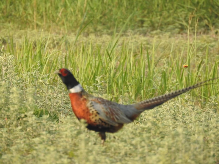 据悉,绿会专家郭耕先生于2023年6月16日在河北省秦皇岛北戴河一湿地发现并记录雌性及雄性野生环颈雉。