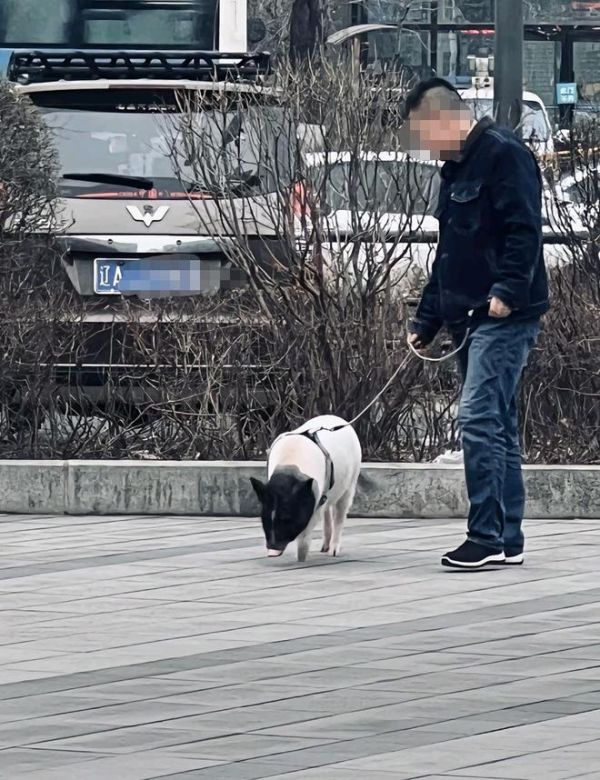 沈阳市民街头遛猪引围观,主人:6年前购买的小香猪,没想到长这么大
