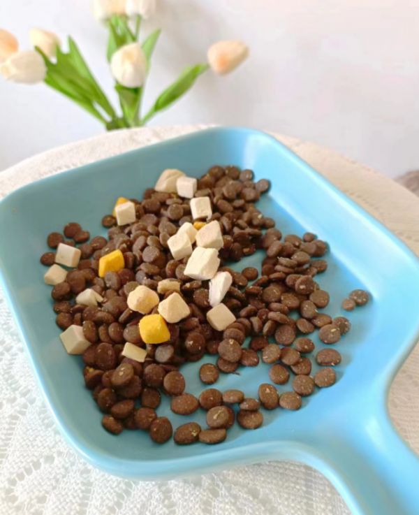 在适口性方面,Farmers Market蓝宝食全价猫粮也是尤为值得夸赞的。75%的动物源性成分,本就为猫粮的口感提供了良好的基础。再加上鸡肉蔓越莓、鸡肉蓝莓、蛋黄、鸡肉四种优质冻干点缀其中,使得这款猫粮在营养均衡的基础上,口感更为丰富,适口性更强,即使是挑食的猫主子,也难抵Farmers Market蓝宝食全价猫粮的美味!