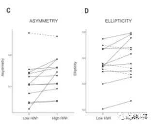 结果4:研究人员发现在小的类群尺度上,卵的形状还是和HWI呈正相关关系。也就是说,在同一个目的鸟类中,飞行能力越强的种类产的卵具有更高的不对称性或者更椭圆。