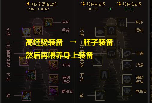 具体步骤:通过词条转移功能,把胚子装备等级最高的词条,转移到身上装备所需要的词条位置,然后进行完美喂养。