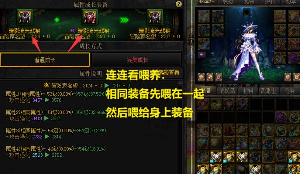 具体步骤:将所有相同名称的装备先喂养一遍,等到词条等级升高之后,再通过完美喂养给身上装备。