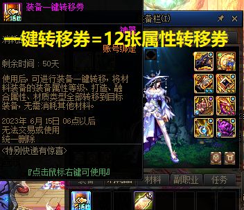 针对目标:活动送了很多装备属性转移券、一键转移券等,这种转移券也可以当成完美升级券使用。