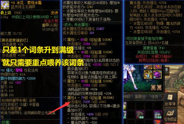 针对目标:已经有3个词条升到满级了,还剩下1个词条为78/79级,那么这时候,我们可以通过转移词条来着重提升这1个词条!