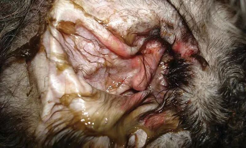 (3)外耳炎与其他的皮肤病尤其是过敏性免疫介导性皮肤病(食物过敏性皮炎、特异性接触性皮炎)及全身性皮肤病(内分泌性)有关。