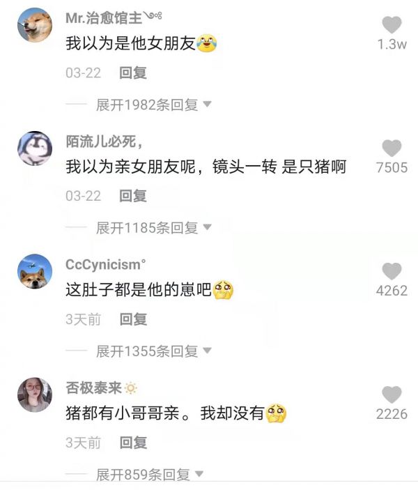 网友:还以为是他老婆,仔细看看是猪,这只猪是最幸福的猪了。
