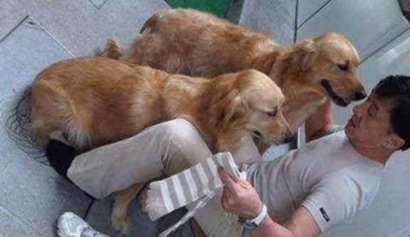 成龙的两只金毛犬叫做JJ和Jones,是成龙大哥在它们很小的时候就抱过来的。JJ和Jones跟着成龙大哥一起长大,但大哥毕竟工作繁忙,聚少离多,只要有空闲时间成龙就会和他们一起做游戏。曾经有人问成龙大哥,出价200万卖不卖狗狗,成龙大哥直接说,我的狗给我一亿也不卖。这真的是比王思聪对狗还壕的一位主人呐,如果狗能听懂的话肯定会感到的稀里哗啦的!跟对了一个好主人。