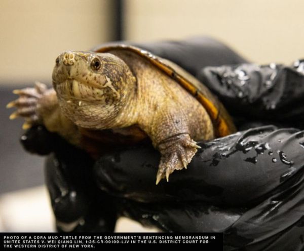 2025年3月,另一名华人男子田某强在美国纽约肯尼迪国际机场被捕,他的走私手段比林某强更隐蔽。据《华人头条》报道,田某强从2018年2月至2023年6月,长期协助走私者将东部箱龟非法出口至香港,总价值高达420万美元。为了避开海关检查,他把乌龟用胶带绑在袜子里,再将包裹标注为“杏仁”“巧克力饼干”,试图蒙混过关。