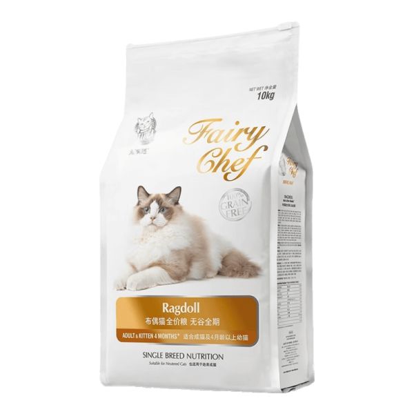 · 展开全文 高蛋白配方:含有91%的肉类原料和42%的蛋白质,能够为布偶猫提供充足的营养,支持其健康成长。 专研颗粒设计:特别的枕骨形颗粒,适合布偶猫的咀嚼习惯,促进食欲,保证猫咪的营养摄入。 毛发健康:富含有助于毛发健康的成分,帮助猫咪在爆毛期保持光滑的毛发,减少掉毛问题。 无谷配方:避免了谷物的添加,适合对谷物敏感的猫咪,减轻肠胃负担。这款猫粮不仅是布偶猫的理想选择,也适合其他猫咪,确保它们在每一餐中都能获得足够的营养。