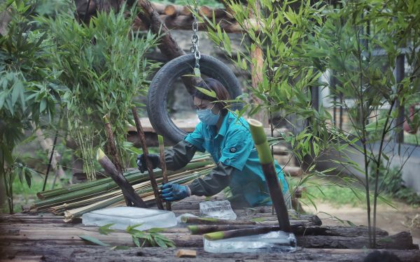 北京动物园动物业务科科长贾婷介绍,当室外气温超过26℃时,饲养员会将北极熊、大熊猫等动物室外运动场与内舍的串门打开,动物可以自由选择进出内舍、休憩纳凉。“大多数动物偏爱晨昏时活动,气温升高就会回到内舍或打盹儿,游客选择早上参观,可以看到更多的动物行为。”贾婷建议。