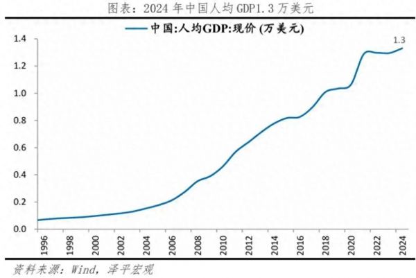 任泽平给出的理由是2024年中国GDP规模为135万亿元,相当于美国的65%左右,人均GDP为美国六分之一。