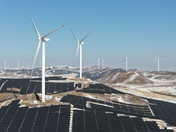 河北省承德市丰宁满族自治县境内的风光一体化项目(2025年11月28日摄,无人机照片)。王立群摄(通联图片)