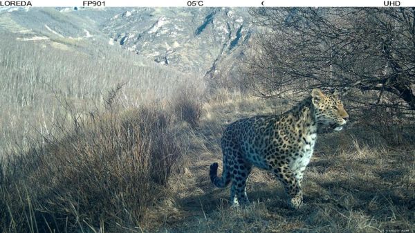 阜平县河北银河山省级自然保护区监测到的华北豹影像(视频截图)。阜平县委宣传部供图