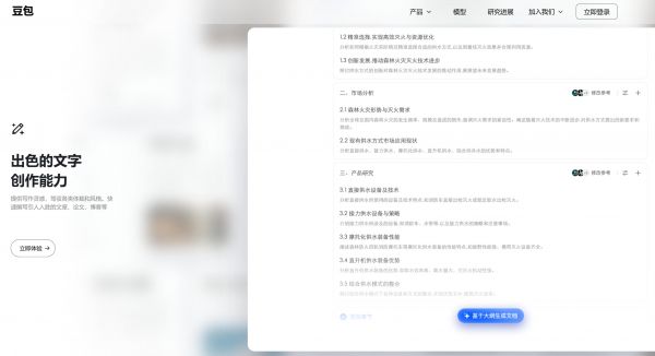 超长文档解析:支持 PDF、Word 等格式文件上传,可精准分析 12.8 万字长文本,金融从业者提取招股书核心竞争力数据仅需 10 秒,学生可一键完成论文降重与学术化改写,输出内容支持 Markdown 或 PPT 格式导出。精准问答系统:采用 COSTAR 框架(背景 + 目标 + 风格 + 受众)解析复杂指令,如 “电商运营需写 30 秒幽默短视频脚本面向 18-25 岁女性” 可直接生成符合需求的内容,避免反复修改。实时信息整合:开启 “深入研究” 模式后,可自动搜索全网资料,几分钟内生成带数据对比的图文报告,支持转为播客形式收听,大幅节省信息搜集时间。基于 Seedream 4.0 与 Seedance 视频模型,豆包网页版构建了全流程创意生成能力: