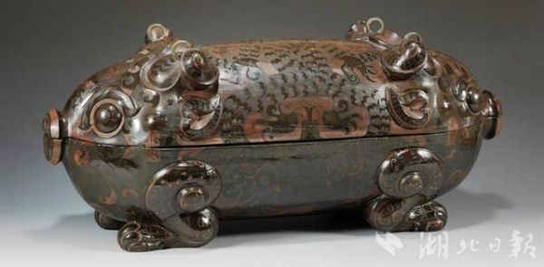 ▲战国漆木彩绘猪形酒具盒,荆州博物馆藏。(图片来自湖北日报)