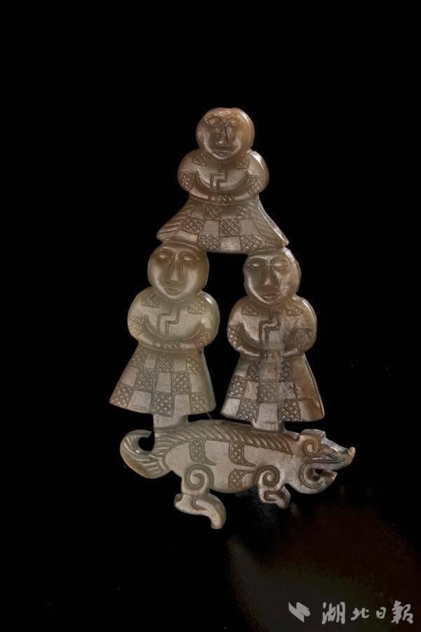 ▲战国三人踏豕玉饰,湖北省博物馆藏。(图片来自湖北日报)