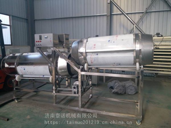 本设备原料适应范围广、产品形状多、膨化机由供料系统、挤压系统、加热系统、传动系统、旋切系统和控制系统等几部分组成。将物料由喂料机喂入,机筒经过高温、高压、高剪切,使物料膨化以达到所需的组织状态等品质要求, 原料在加工过程中得到高温、高压杀菌,***了产品的卫生安全;本机采用无级调速喂料器,喂料均匀;主机齿轮箱配有齿轮油泵冷却、润滑系统;螺杆具有优良的自清理能力,重新开机或更换物料品种时无需清理机膛和螺杆;主机采用变频调速控制以适应不同品种和原料,出料切刀变频调速控制,以调节物料长短;***的电器控制设计使整机自动化程度高,运行平稳; 出料模具有多种形状可供选择