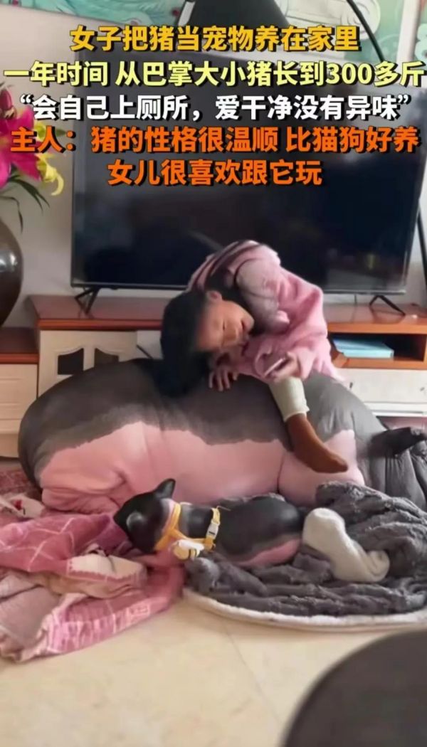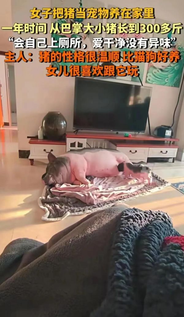 然而,时间这位神奇的魔法师,总是悄无声息地改变着一切。日子一天天过去,曾经小巧玲珑的小猪,身体发生了令人惊叹的变化。短短不到一年时间,它竟然摇身一变,长成了一头重达300斤的巨猪。这可大大出乎了女子的意料,但她对小猪的爱,丝毫没有因为它的体型变化而减少半分。她特意为小猪铺上厚厚的、柔软的褥子,还贴心地盖上温暖的小棉被,就怕它在冰冷的地板上着凉,那细心呵护的模样,就像对待自己的孩子一般。