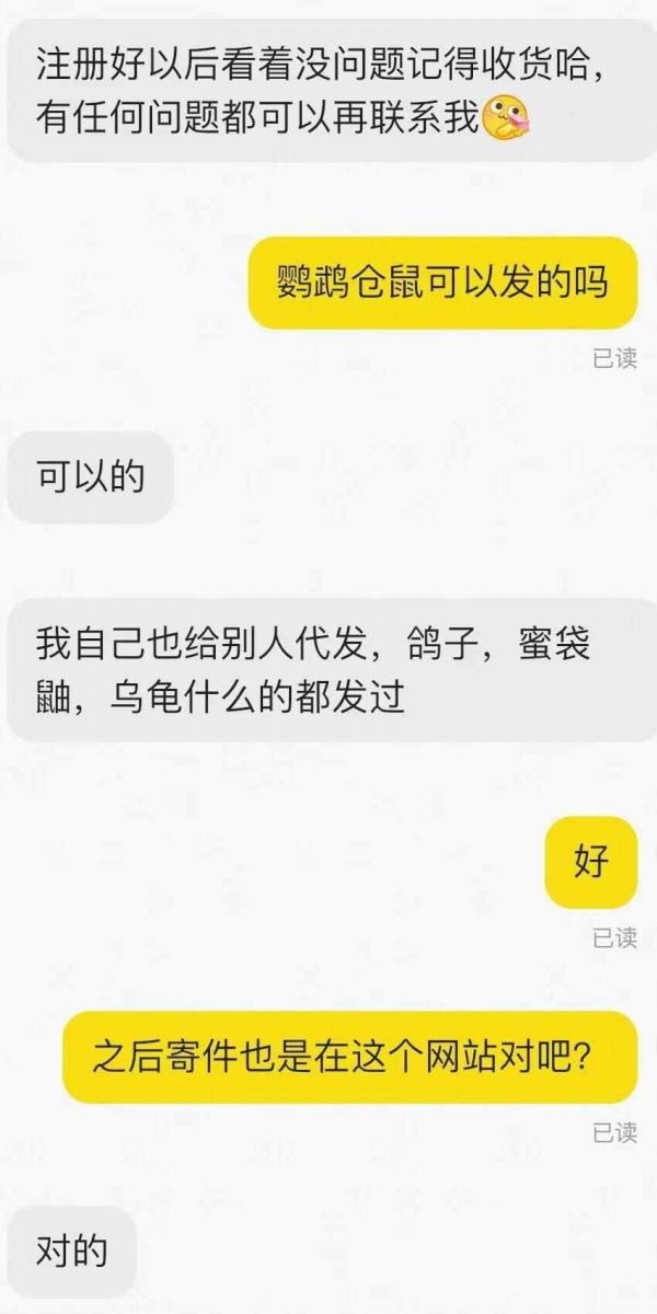 记者通过闲鱼平台购买资质代办后,可以通过卖家提供的网址下单邮寄活物。