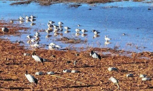 今年以来,大桥片区提前种植了4000多亩马铃薯,长海子片区也新增食源基地400多亩,种植了荞麦、萝卜、蔓菁等黑颈鹤喜食的食物,为鹤群提供充足食物。